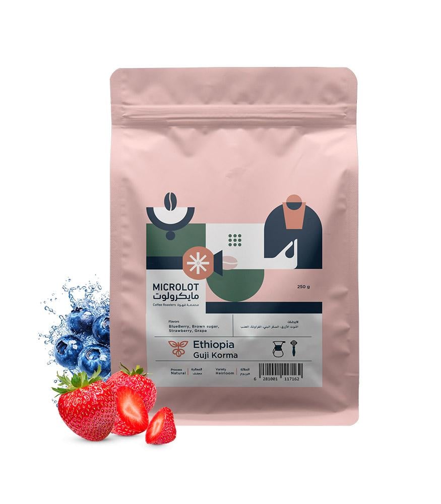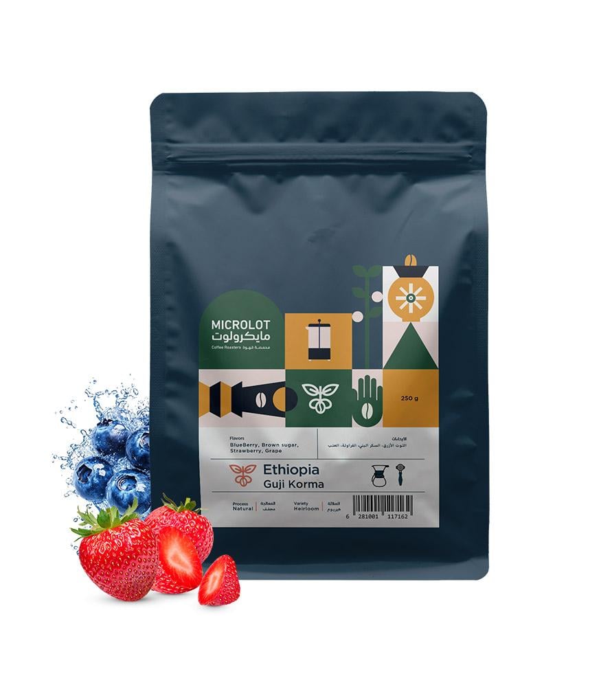 Guji Korma from Ethiopia’s renowned Guji region is processed using the natural (dry) method to highlight its vibrant fruit character. It features refreshing strawberry and blueberry notes layered with the sweetness of brown sugar and grape, plus a bright acidity shaped by high-altitude growing. An ideal choice for both filter brewing and espresso—perfect for specialty coffee lovers seeking a rich, flavor-packed cup.